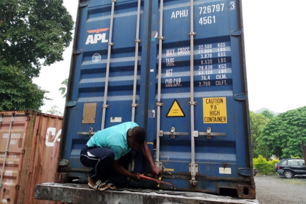 A White Cross container arrives in Cameroon.